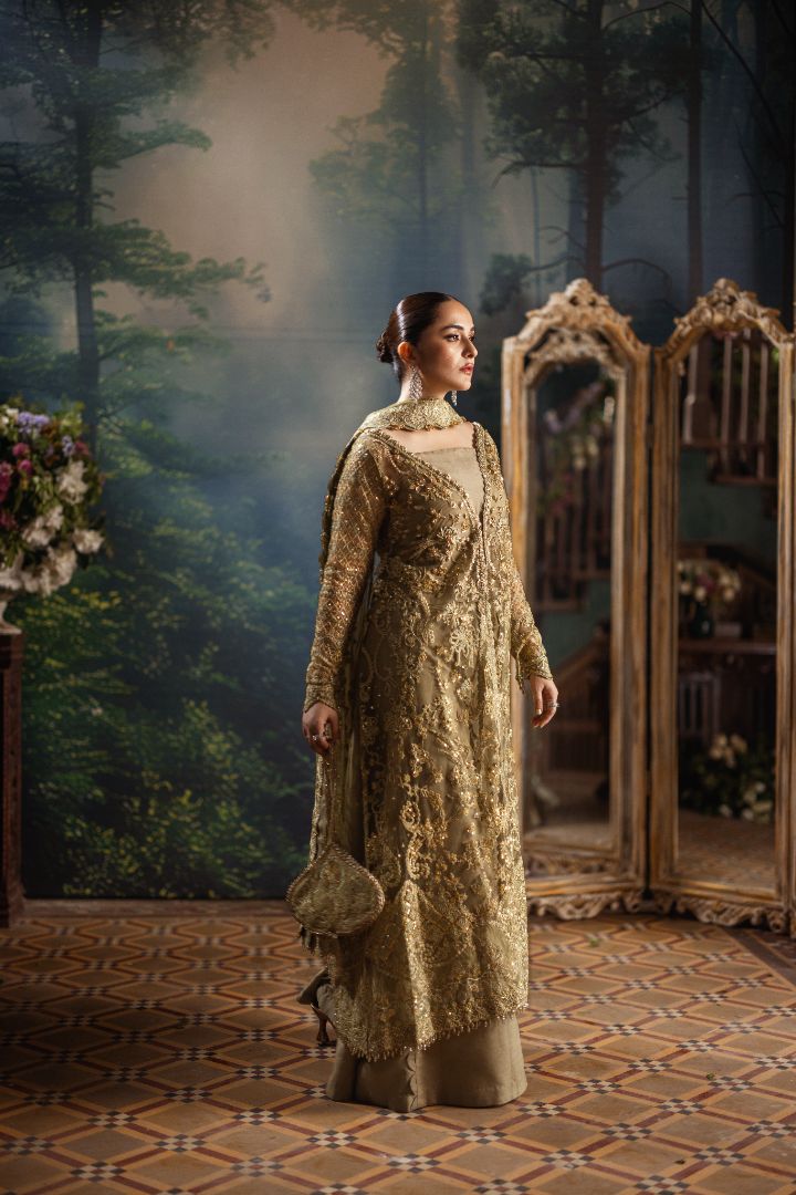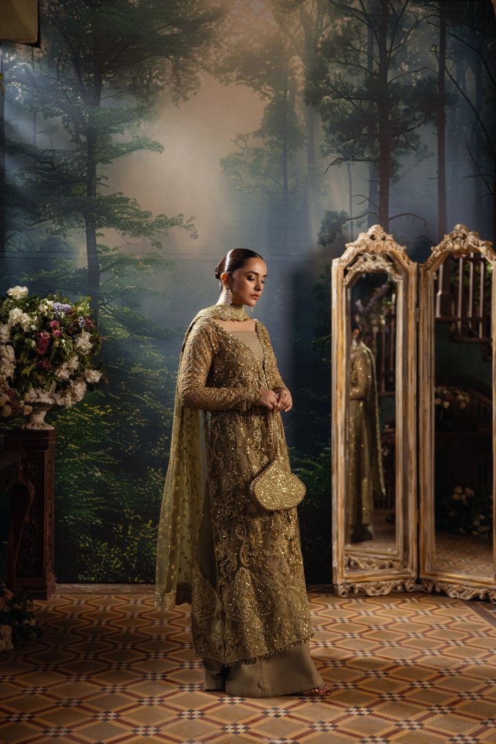 Golden Katori: Intricately placed golden katori accents bring a hint of radiance and regal warmth to the embroidery.