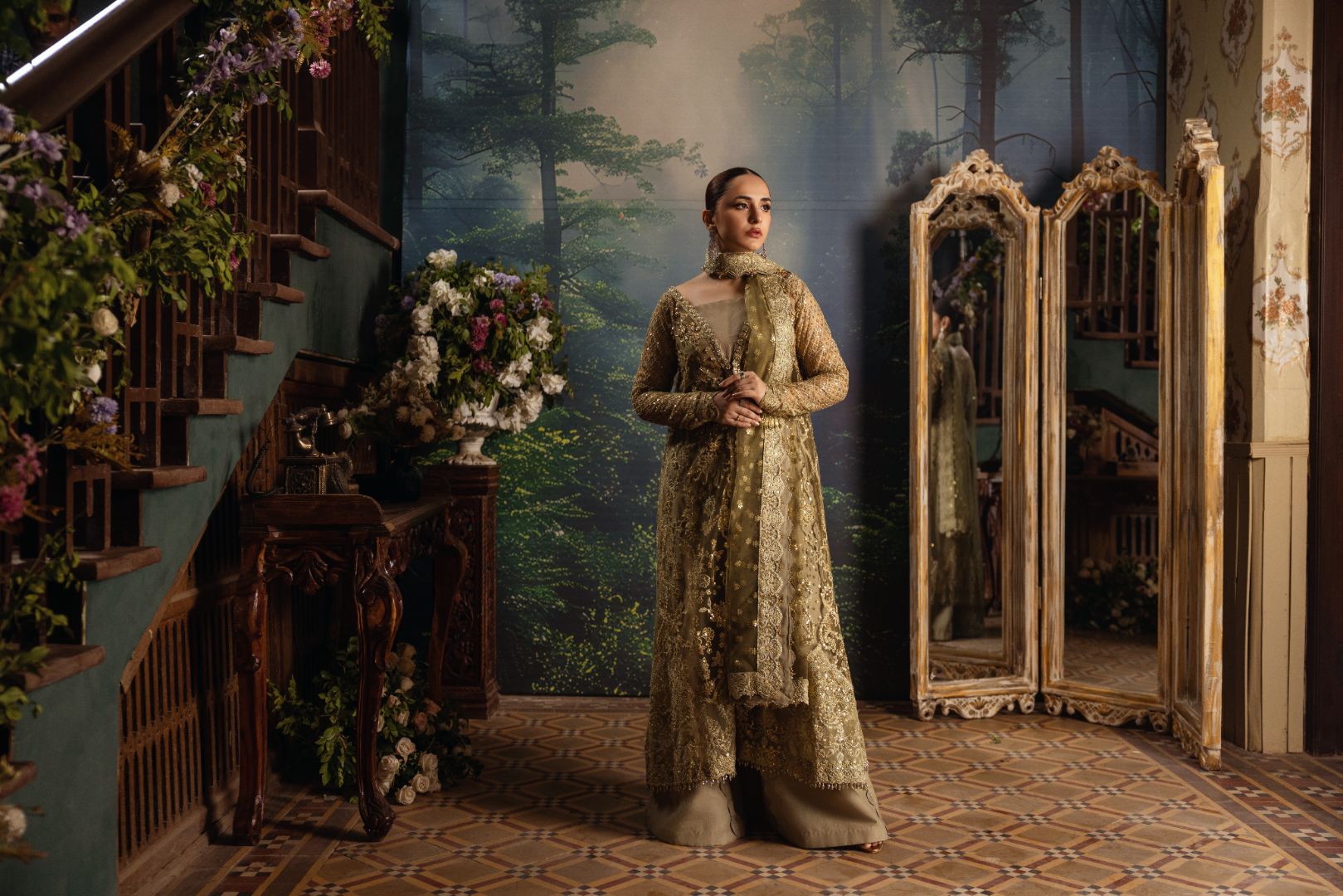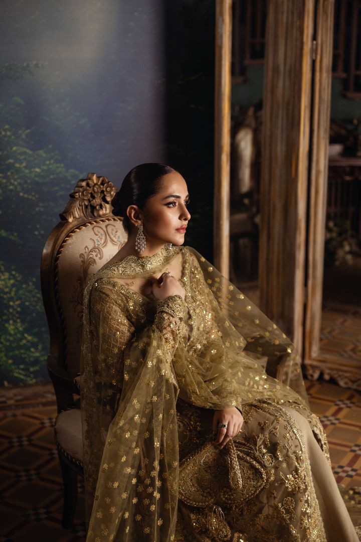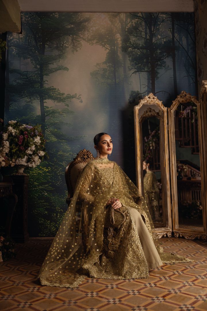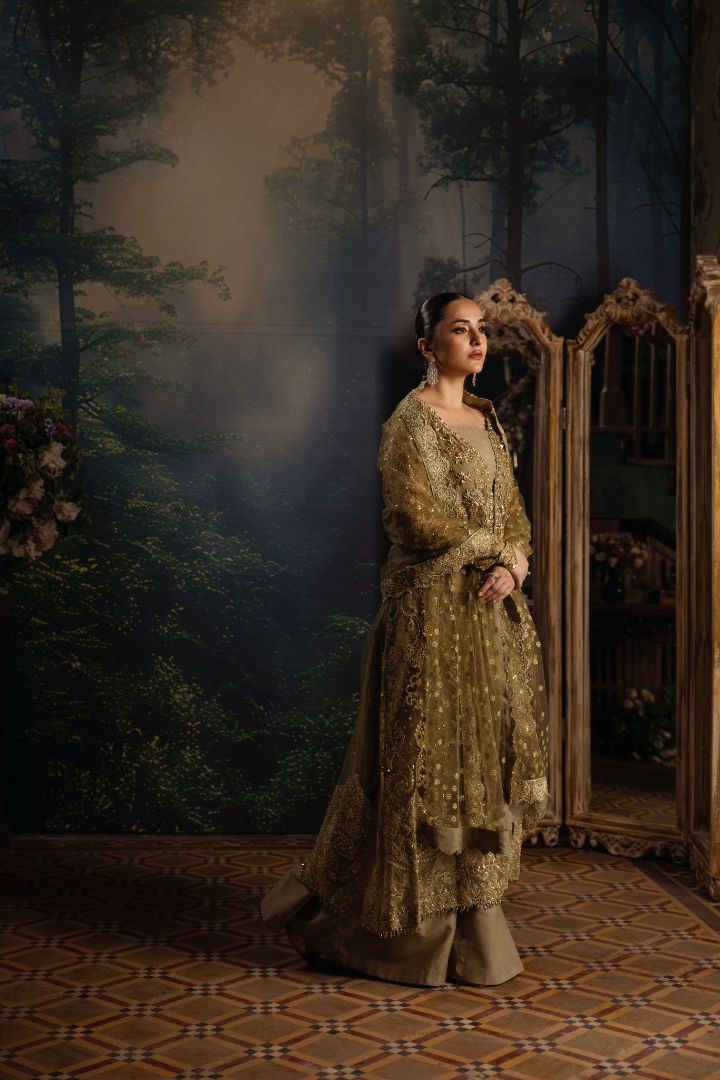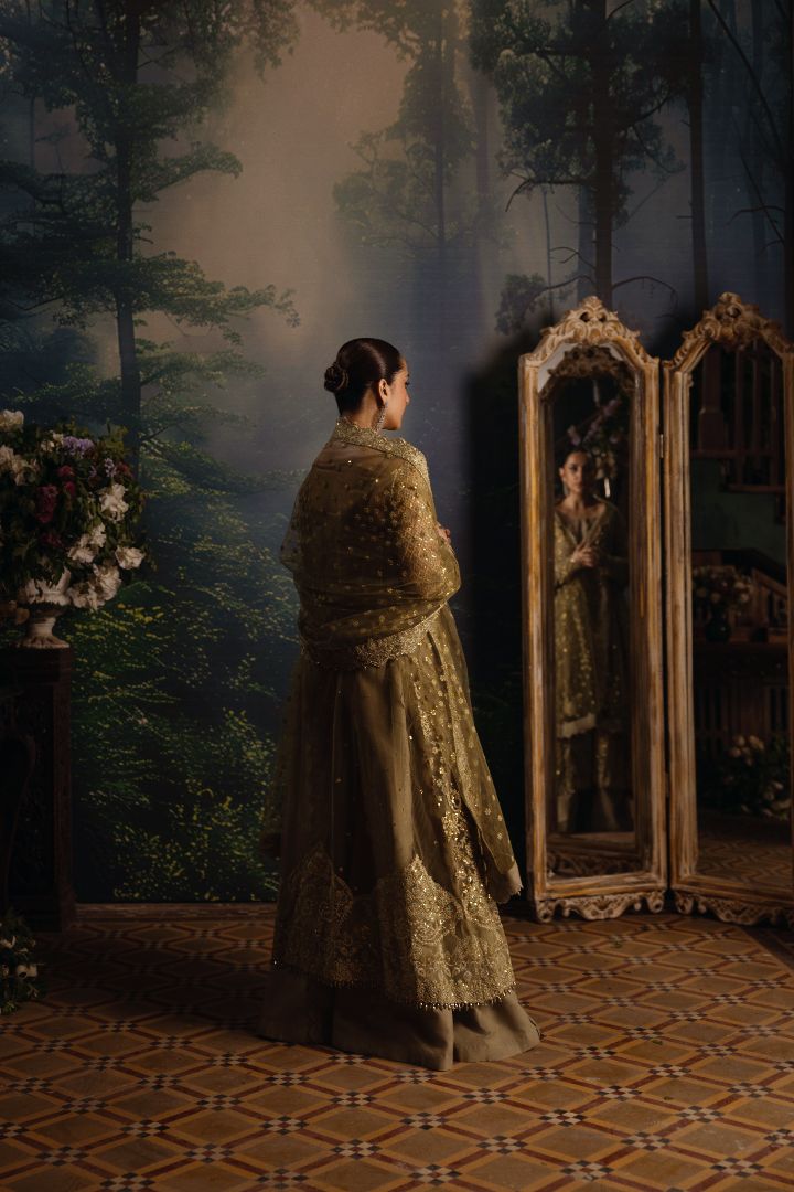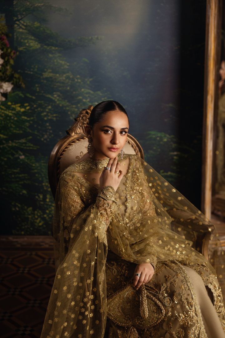 Organza: A lightweight, sheer fabric chosen for the dupatta, offering fluidity and an ethereal festive finish.